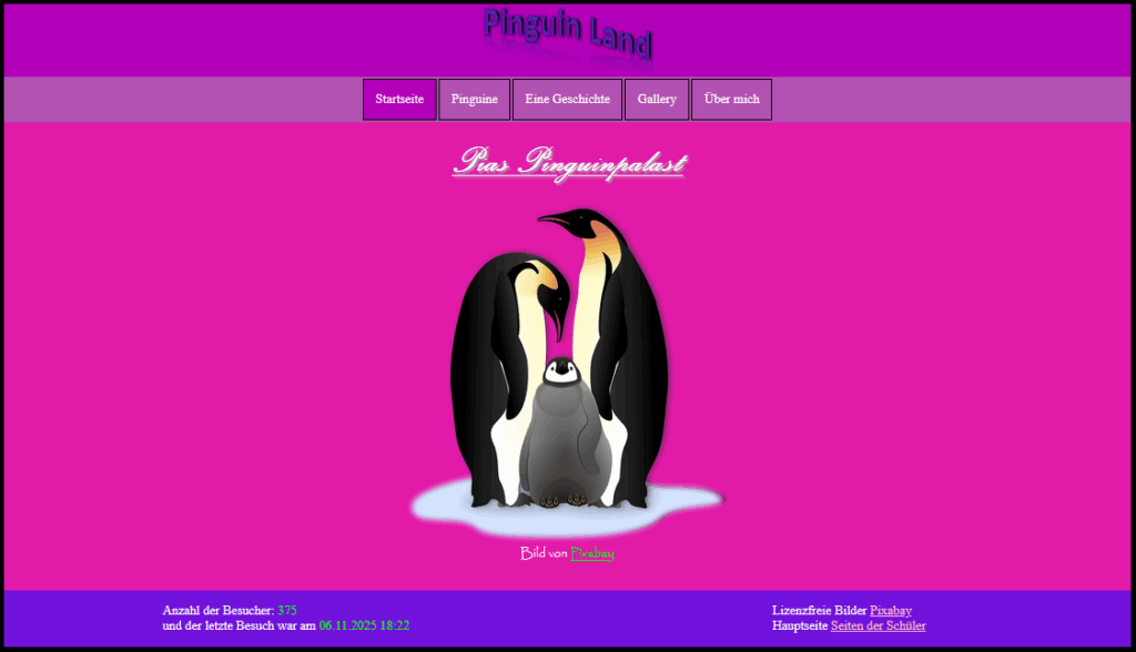 Auf dieser Seite werden die Webseiten der Schüler veröffentlicht. Alle Seiten sind in Bearbeitung und zeigen den aktuellen Stand der Kenntnisse.